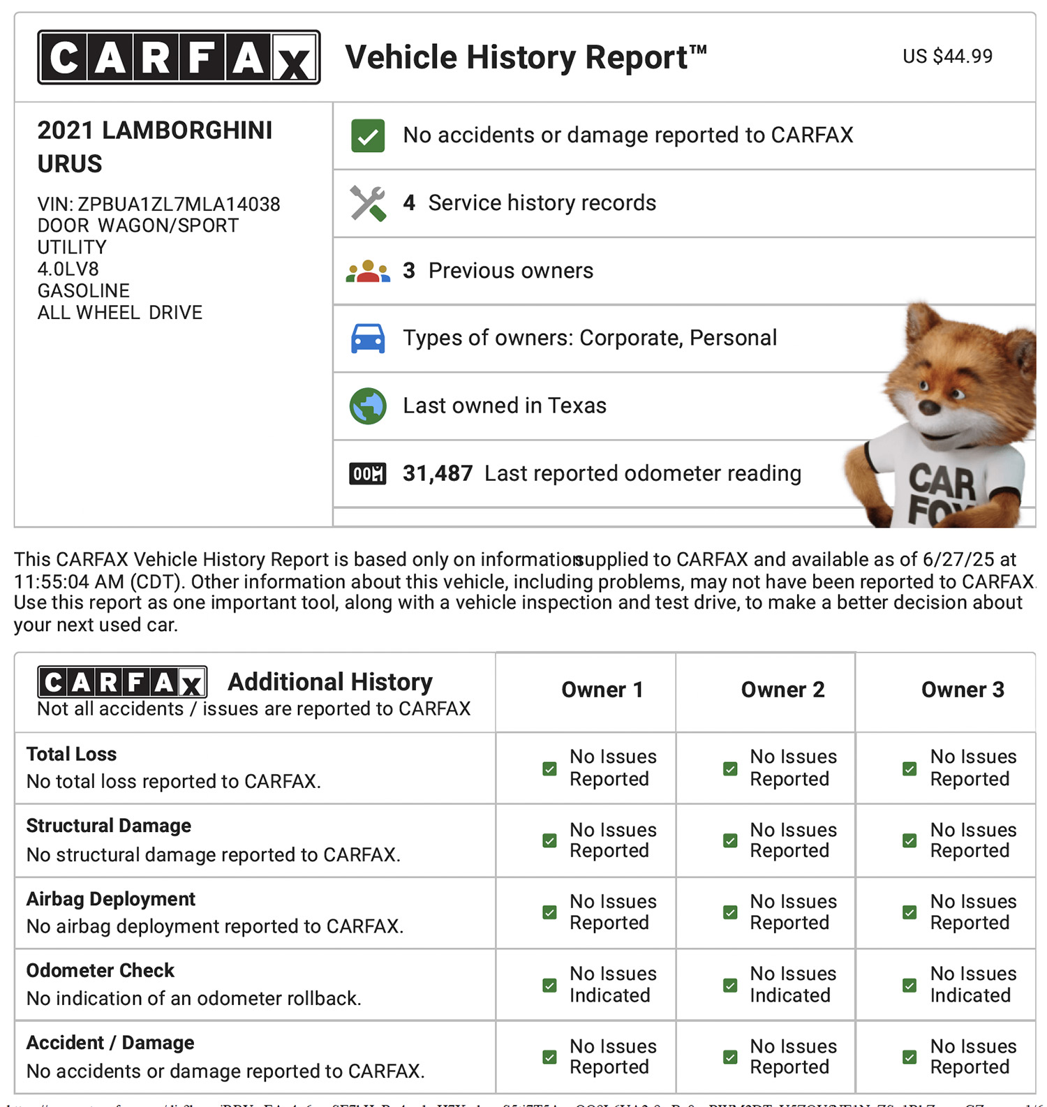 - Lamborghini Certified Pre-Owned bumper to bumper warranty until March 12, 2026